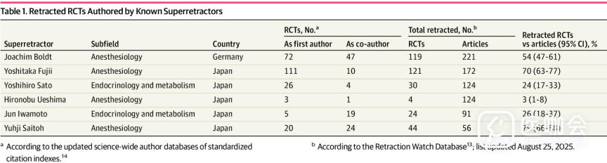 JAMA子刊:被撤回的RCT中,约五分之一来自这6个人