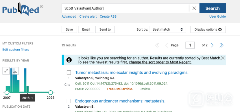 图.Pubmed中检索的Scott Valastyan的发文情况,检索时间:2026年4月23日