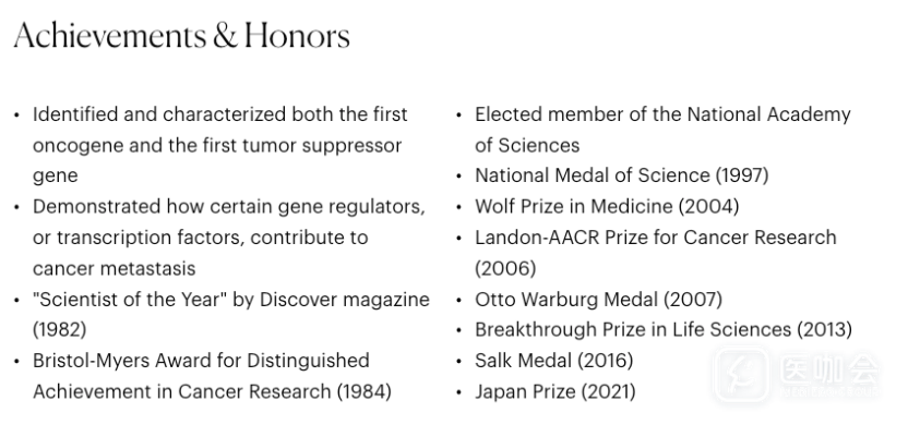 图.Whitehead生物医学研究所官网列出的Robert Weinberg的成就