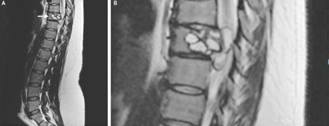 这名女性背部的核磁共振显示,其脊柱有一处病变,需要手术切除。进一步的测试显示,这种病变是由细粒棘球绦虫感染引起的,这是一种小型绦虫,常见于狗和一些农场动物(绵羊、牛、山羊和猪等)。