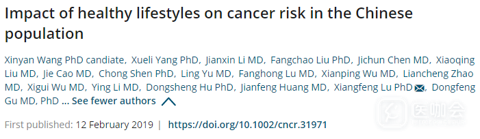 Xinyan Wang, Xueli Yang, Jianxin Li, Fangchao Liu, Jichun Chen, Xiaoqing Liu,Jie Cao, Chong Shen,Ling Yu, Fanghong Lu, Dongfeng Gu et al., Impact of healthy lifestyles on cancer risk in the Chinese population, https://doi.org/10.1002/cncr.31971