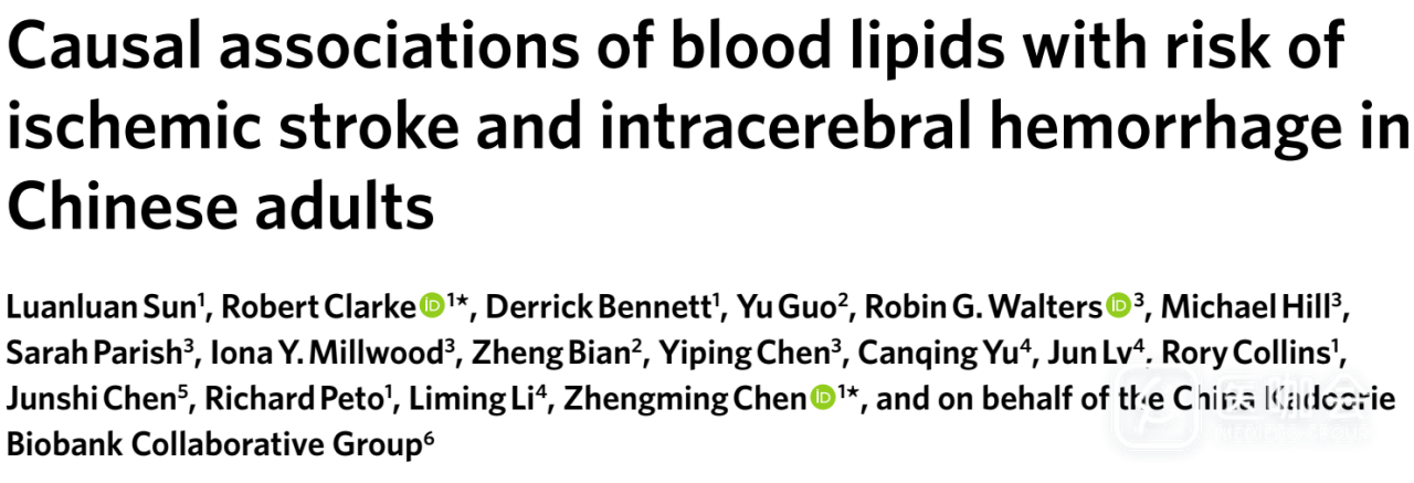 Causal associations of blood lipids with risk of ischemic stroke and intracerebral hemorrhage in Chinese adults. Nat Med. 2019 Mar 11. doi: 10.1038/s41591-019-0366-x.