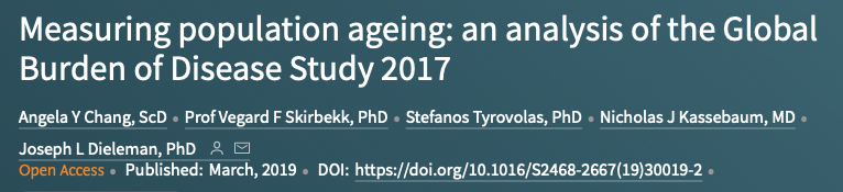 Measuring population ageing: an analysis of the Global Burden of Disease Study 2017.Lancet Public Health.March 6, 2019.