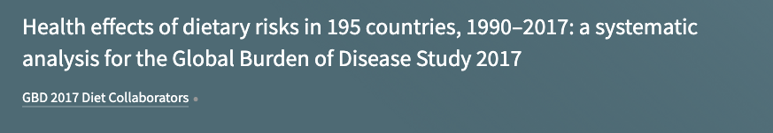 近期,柳叶刀杂志发表了2017全球疾病负担研究(GBD 2017)的最新研究成果,聚焦饮食相关危险因素对健康的影响。