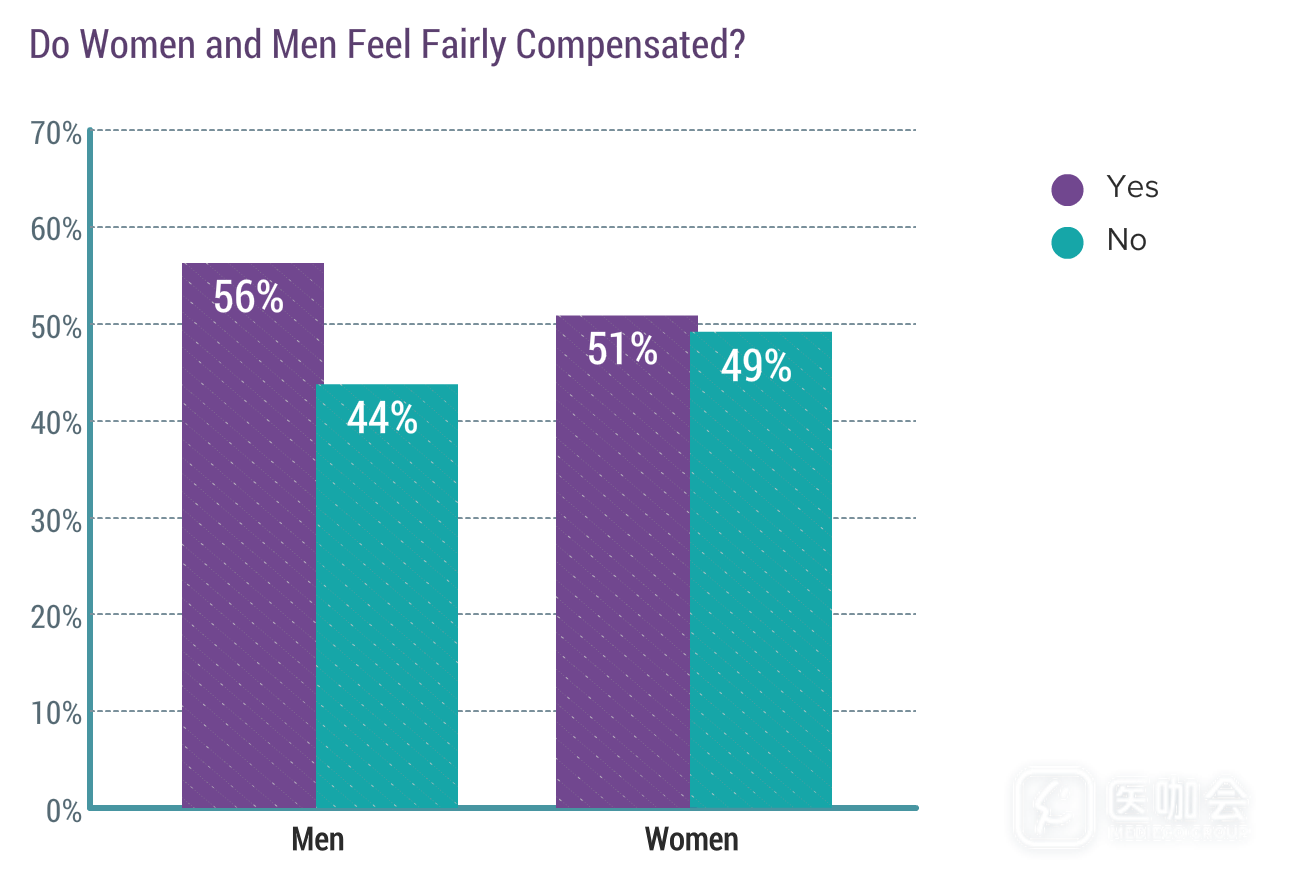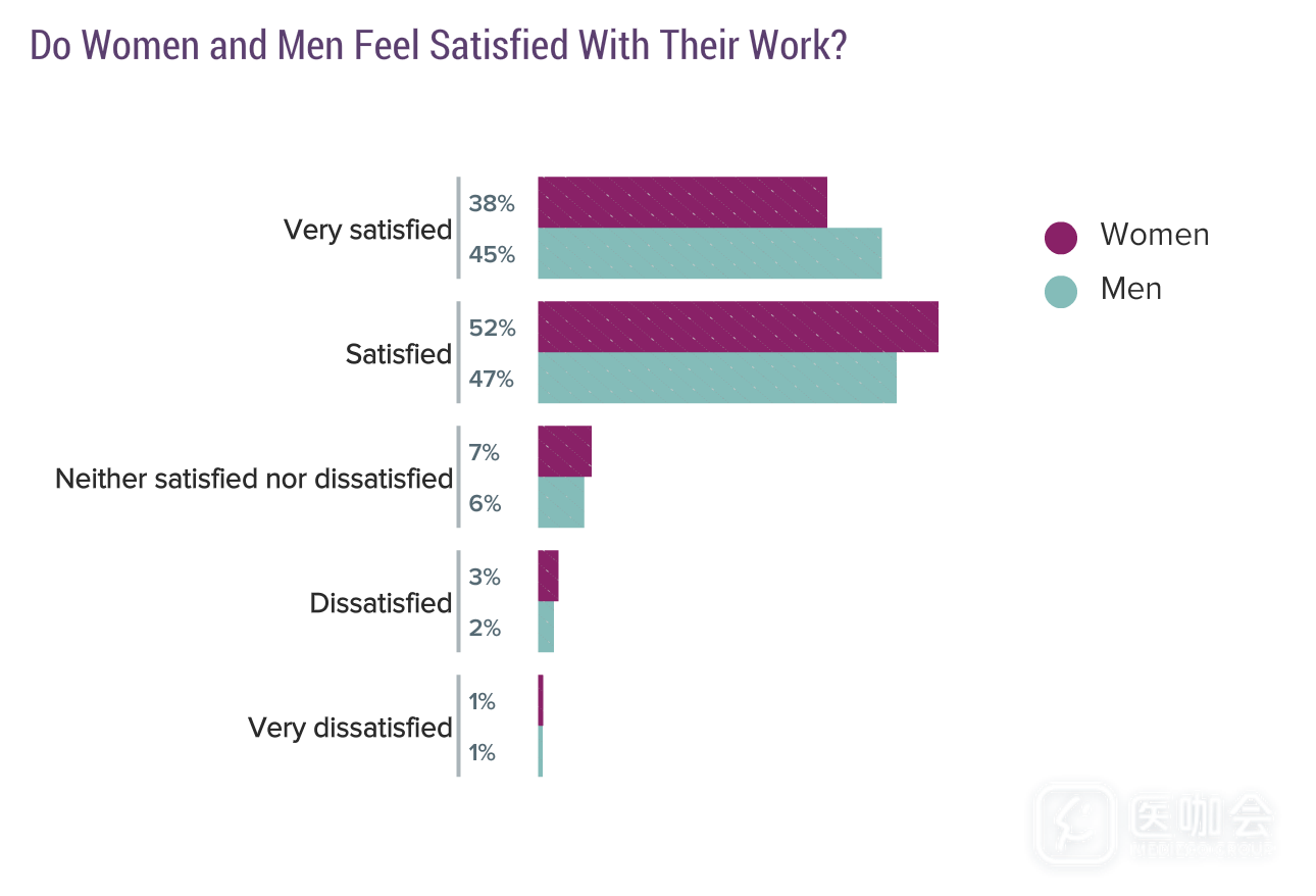 连续两年的报告数据显示,超过一半的男医生和女医生对自己的工资满意。考虑到收入差距,男医生对收入的满意度超过女医生就不奇怪了,但满意度差异不大。