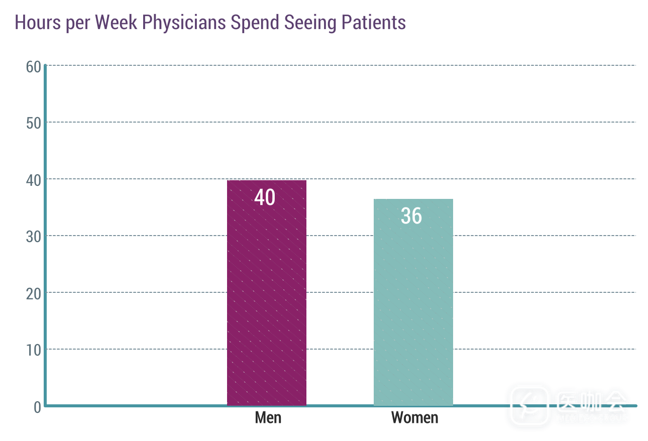 男医生每周平均看诊40小时,女医生为36小时,差异大约为9%。