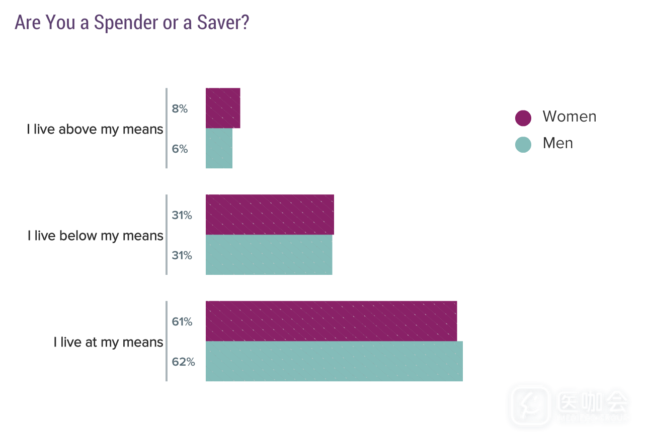 仅有一小部分男医生和女医生入不敷出(live above their means)。