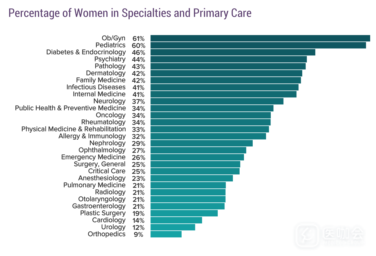 参考文章:Medscape Female Physician Compensation Report 2019. Medscape. Jul 2,2019.