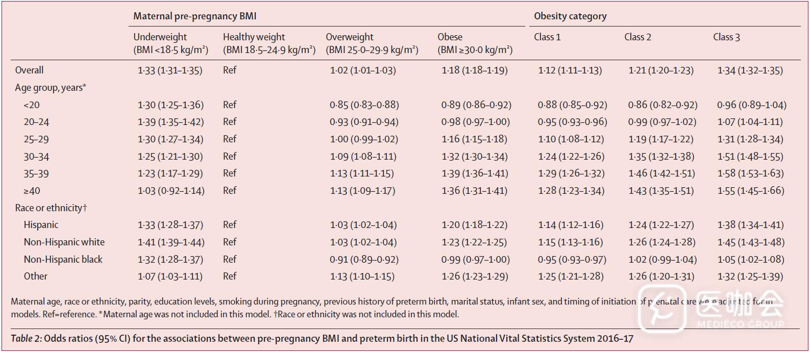 本研究发现,一般人群中,母亲孕前肥胖与早产风险有显著相关性,但是该相关性随着母亲年龄和种族/民族而有所不同。提供与早产有关的孕前和产前咨询的医生,应该考虑到这些因素。