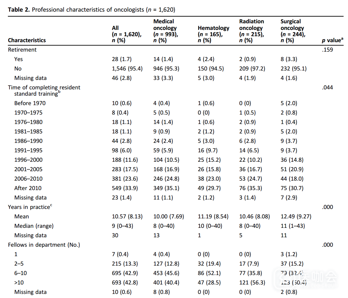 2015年9月至2016年12月,该研究对3500名中国肿瘤领域相关医生进行了横断面调查,涉及专科包括肿瘤内科、放射科、肿瘤外科和血液科。