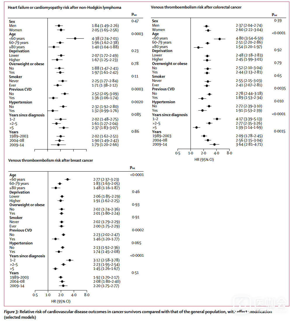 图3. 癌症幸存者相比一般人群的心血管疾病发生风险(效应修正)