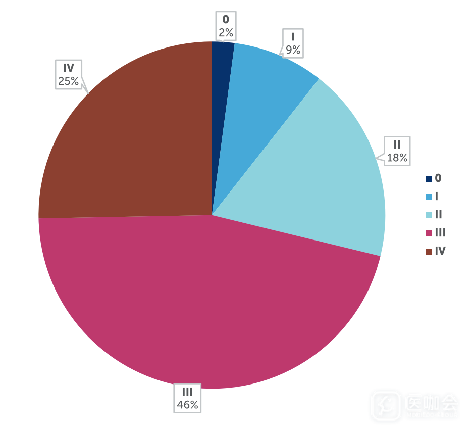 年轻患者的结直肠癌在诊断时很多已经处于晚期。最近,社交媒体对1195名结直肠癌患者和50岁以下的幸存者进行了调查 [9],结果显示,71%的人在诊断时已处于结直肠癌III或IV期(图3)。这项研究的主要作者 Ronit Yarden说:“年轻人在及时就诊方面确实需要改进。”