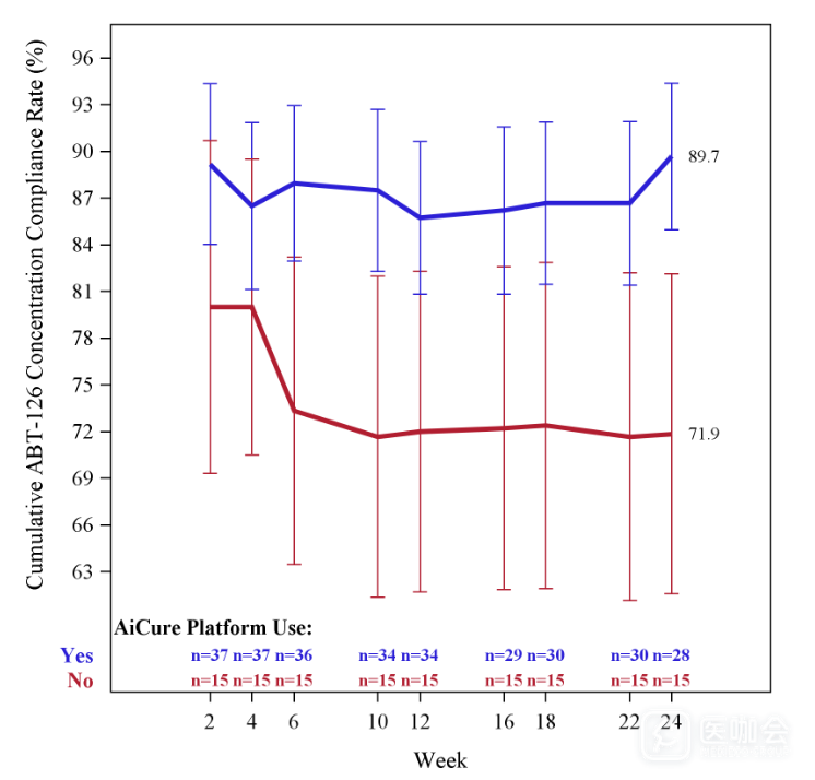 一项针对精神分裂症患者的研究显示[8],使用AiCure平台的患者中,约有90%的人会按处方服药,相比起来,定期接受监测的患者中,这一比例约为72%(图3)。该公司表示,他们的软件甚至可以检测人们的面部表情,以跟踪他们对治疗的反应,这可以指导治疗。