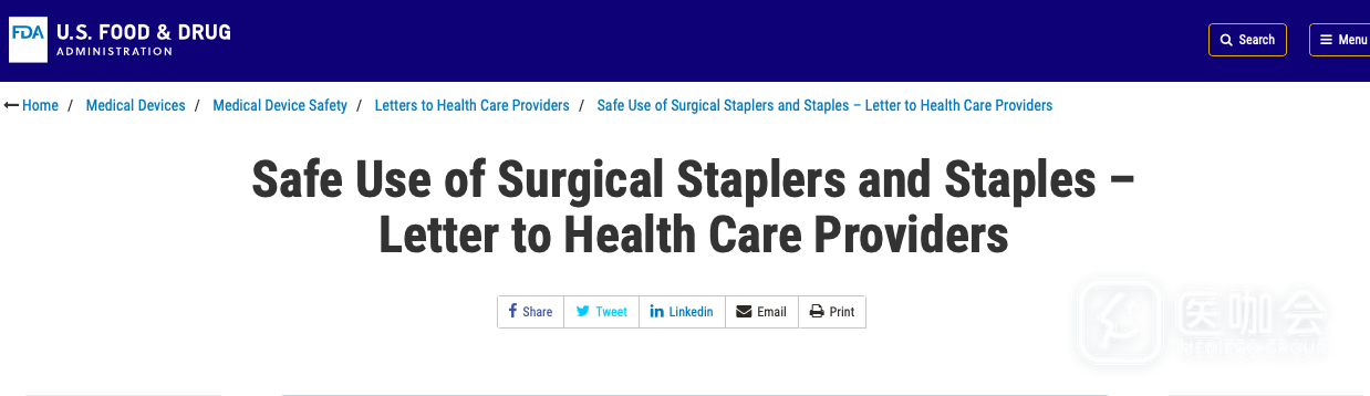 参考文献: 1.https://www.fda.gov/medical-devices/letters-health-care-providers/safe-use-surgical-staplers-and-staples-letter-health-care-providers 本文整理自:Top 10 Health Tech Hazards for 2020,Medscape,October 08, 2019, https://www.medscape.com/viewarticle/919603#vp_1