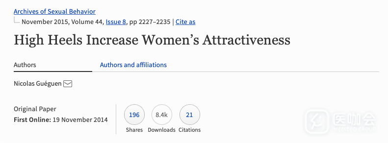 这句话,摘自《Archives of Sexual Behavior》杂志发表的一项学术研究“High Heels Increase Women's Attractiveness” [1]。