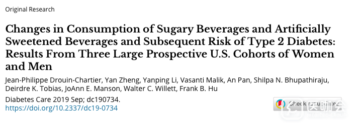 最近《Diabetes Care》杂志,发布了一项关于甜味饮料摄入量的改变对后续T2DM发生风险影响的研究,对上述问题进行了相关的分析和验证。