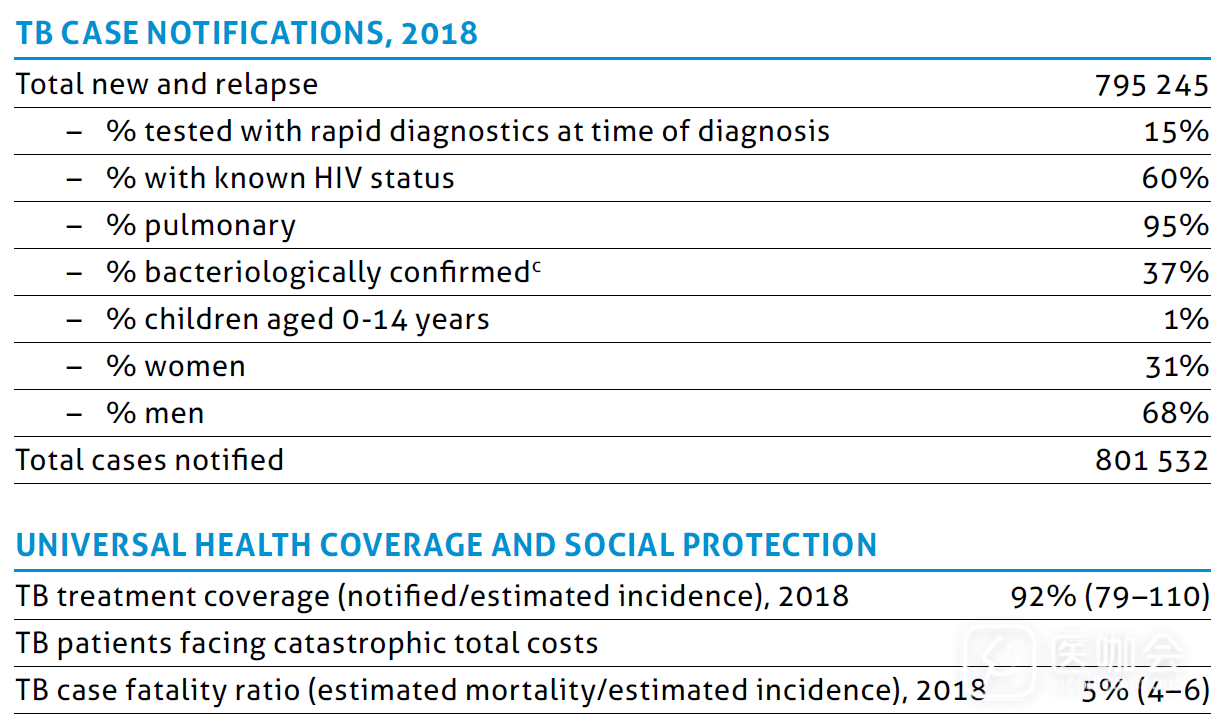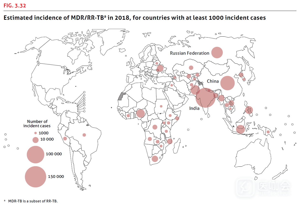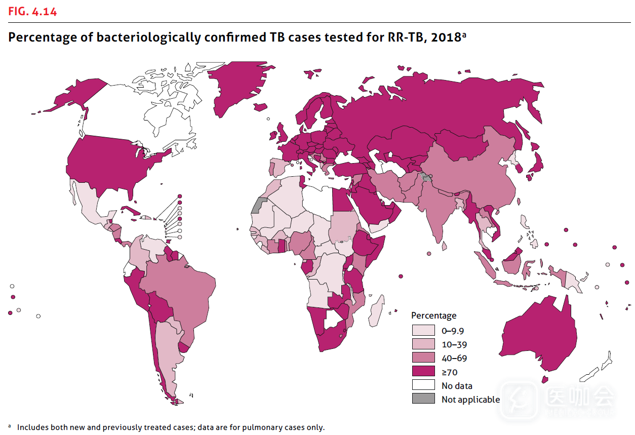 全球范围内,3.4%的新发结核和18%的既往经过治疗的患者为MDR/RR-TB。