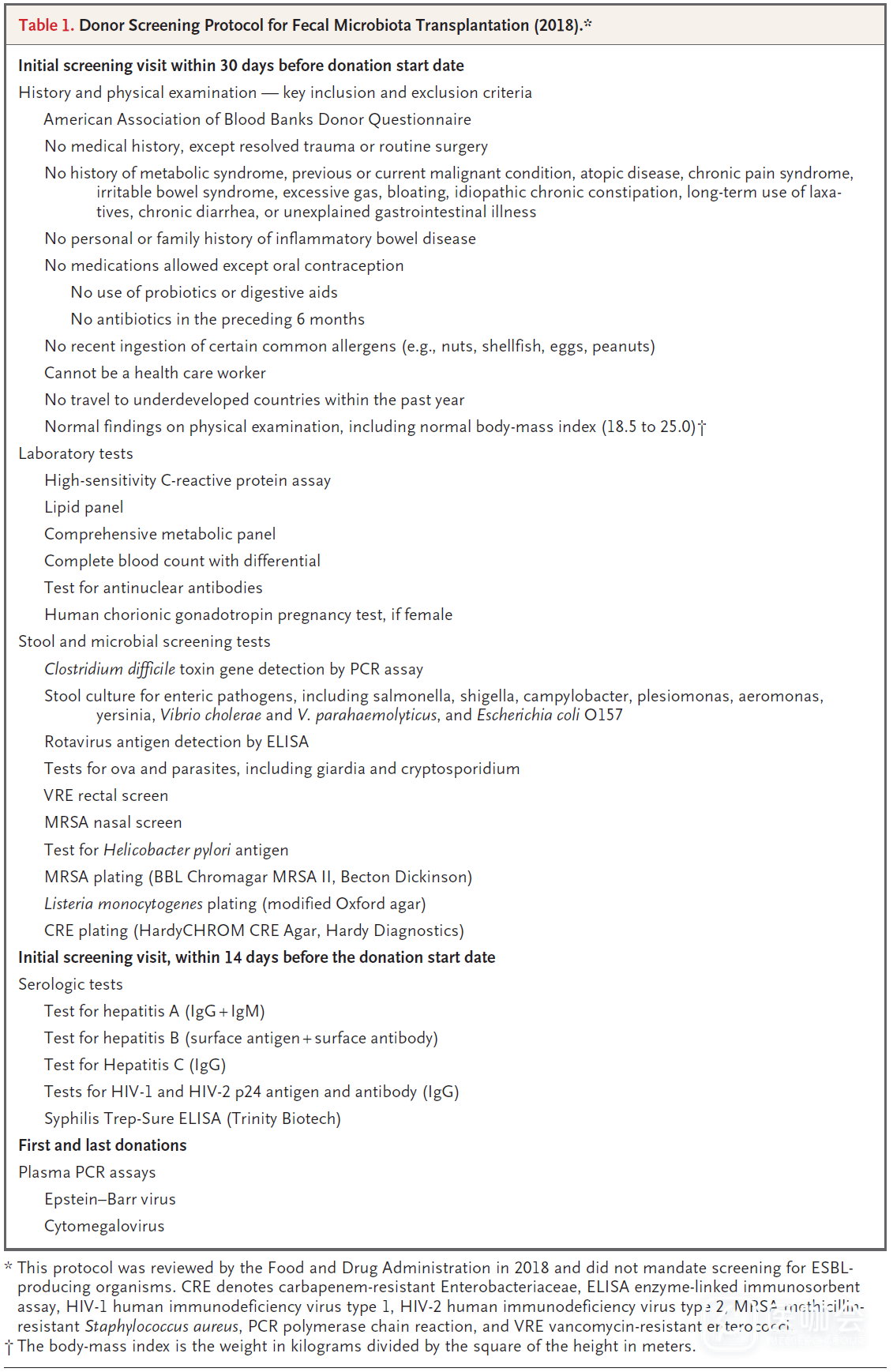 在NEJM发表的另外一篇文章《Donor Screening for Fecal Microbiota Transplantation》中,介绍了FMT的供体筛查流程以及捐献者合格率。