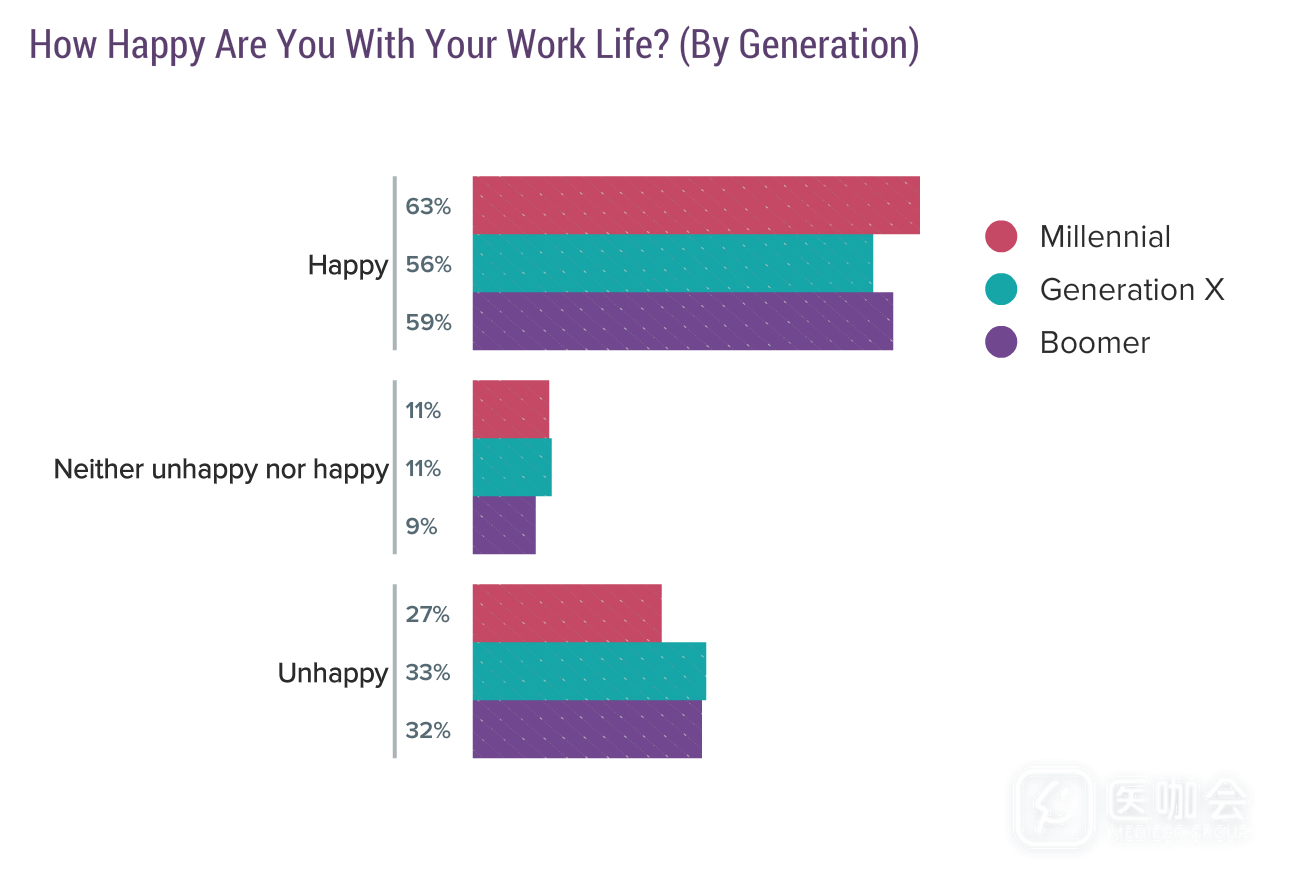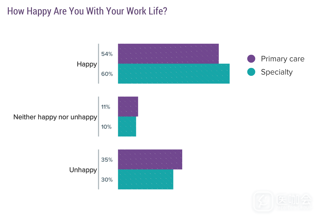 大部分(59%)医生都在工作中感受到了幸福感。