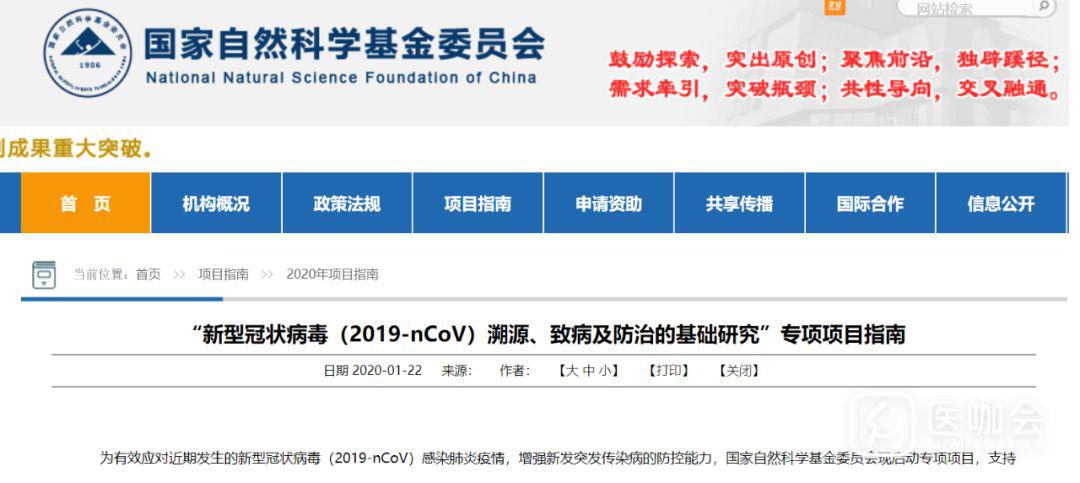 “新型冠状病毒(2019-nCoV)溯源、致病及防治的基础研究”专项项目指南