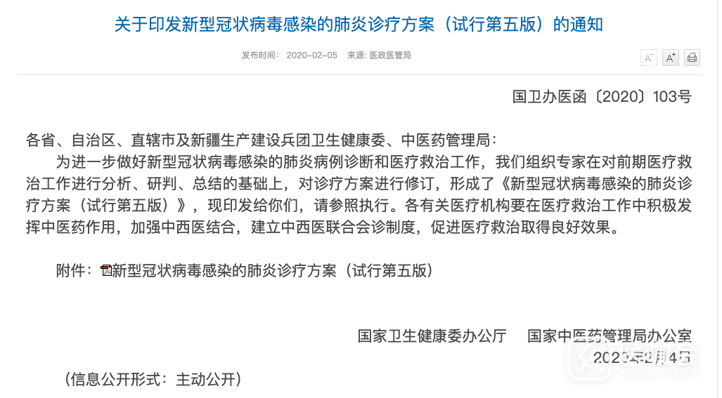 第五版新型冠状病毒感染的肺炎诊疗方案发布!