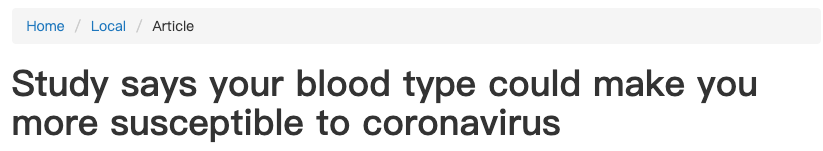 还有更大的问题,基于预印本平台上发表的一些研究,会有媒体发布耸人听闻的新闻报道,例如“A型血的人患Covid-19的风险明显更高”。如下图: