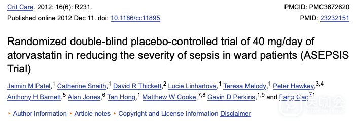 也有使用他汀类药物治疗败血症和ARDS的随机临床试验。其中三项试验,患者在接受他汀类药物治疗时已经接受了机械通气治疗,但似乎并没有降低死亡率。但有一项使用他汀治疗败血症住院患者的小型试验显示,大部分病例并没有发展为严重的败血症和多器官功能衰竭。但由于样本量较少,研究结果未达到统计学意义。