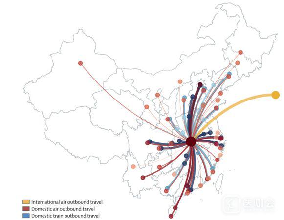 武汉是我国华中地区主要的航空和火车交通枢纽,研究人员估计了每天从武汉乘飞机、火车和公路出境的人数,数据共有3个来源:(1)从民用航空指南(Ofcial Aviation Guide,OAG)获得的2019年1月和2月前往武汉的全球航班预订量;(2)基于位置服务的腾讯数据库中记录的2019年1月6日至3月7日,从武汉到全国300多个地级行政单位的每日国内旅客数量;(3)武汉市交通管理局估算的2020年春运期间进出武汉的国内客运数量。