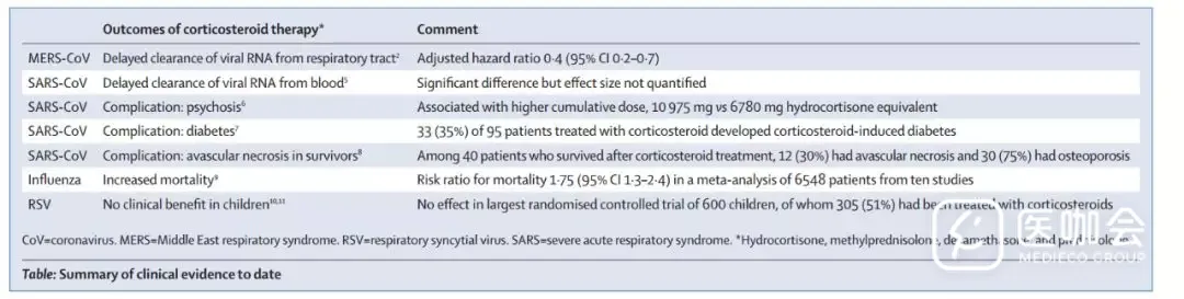了解使用激素治疗2019-nCoV的益处和危害至关重要。本文将着重讨论在冠状病毒感染和类似疫情爆发时应用激素的临床结局(下表)。