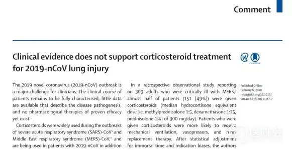 Lancet:临床证据暂不支持用激素治疗新冠病毒导致的肺损伤