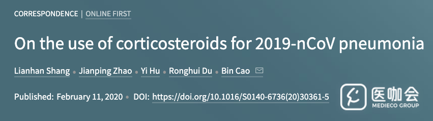 Lancet:糖皮质激素在新冠肺炎中的应用,听听中国一线医生的观点