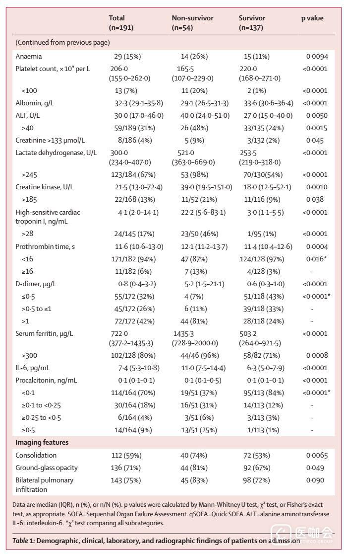 Lancet最新文章:武汉COVID-19住院患者的临床进程及死亡危险因素分析