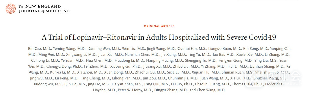 NEJM发布中国最新研究成果:洛匹那韦-利托那韦治疗Covid-19重症患者疗效不显著