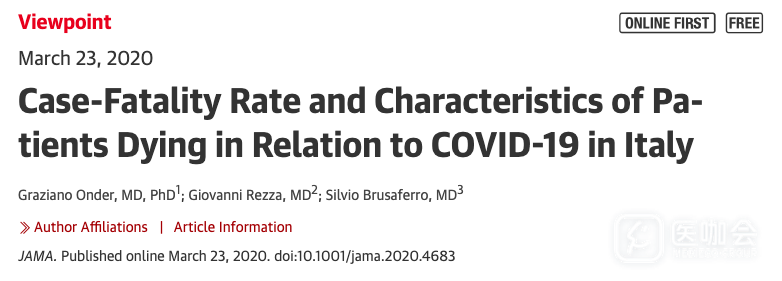 近日,JAMA发布了一篇专家观点文章《Case-Fatality Rate and Characteristics of Patients Dying in Relation to COVID-19 in Italy》,从三个方面分析意大利COVID-19病死率高的原因。
