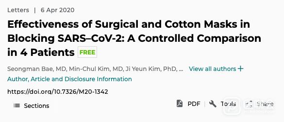 4月6日,内科学年鉴上曾经发表了一篇文章,表示“医用外科口罩和棉质口罩似乎都无法阻挡SARS-CoV-2病毒的传播”,而近日该文章却遭撤稿。