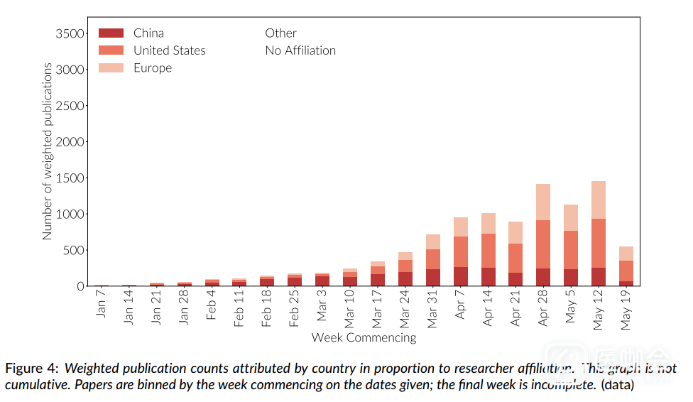四、Covid-19研究最开始集中在中国,随着西方疫情的爆发,研究重心逐渐向西方转移。