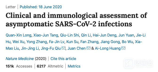 另外一项研究于6月18日发表在《Nature Medicine》杂志上,研究人员比较了重庆万州区37名无症状感染患者和37名有症状患者的免疫反应情况。