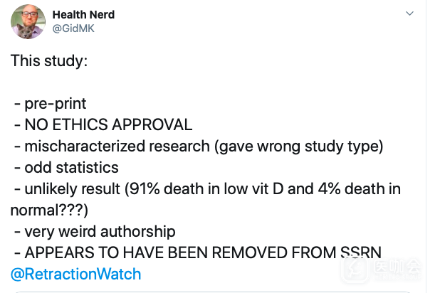 请查看医咖会既往报道:Lancet、NEJM同时撤稿遭受争议的Covid-19研究,两项研究的原始数据受到质疑!
