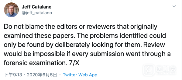 具有讽刺意味的是,《Lancet》和《NEJM》以前也都出现过类似事件。正是柳叶刀杂志发表了Wakefield将MMR疫苗与自闭症联系起来的论文。1983年,NEJM撤回了Darsee关于心脏病的两篇学术欺诈的文章。NEJM创刊208年来,共撤稿25篇。在Darsee撤稿事件发生之后,期刊的编辑Arnold Relman说:“即使合著者实际上并没有参与任何的实验室工作,至少应该知道研究做了什么,为什么这么做。”