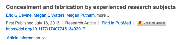 大约三分之一的人隐瞒了健康问题,28%的人没有报告处方药,20%的人隐瞒了软性毒品的用药史。此外,有25%的人夸大症状以便符合某项研究的入组标准,而14%的人则假装患有某项研究相关的疾病。