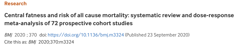 BMJ发布最新Meta分析,聚焦中心型肥胖(腹型肥胖)与全因死亡风险