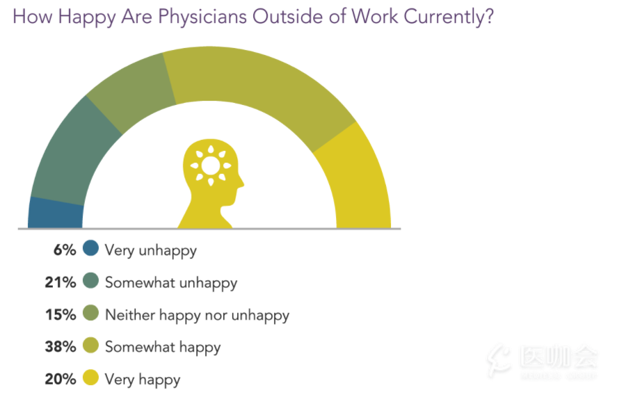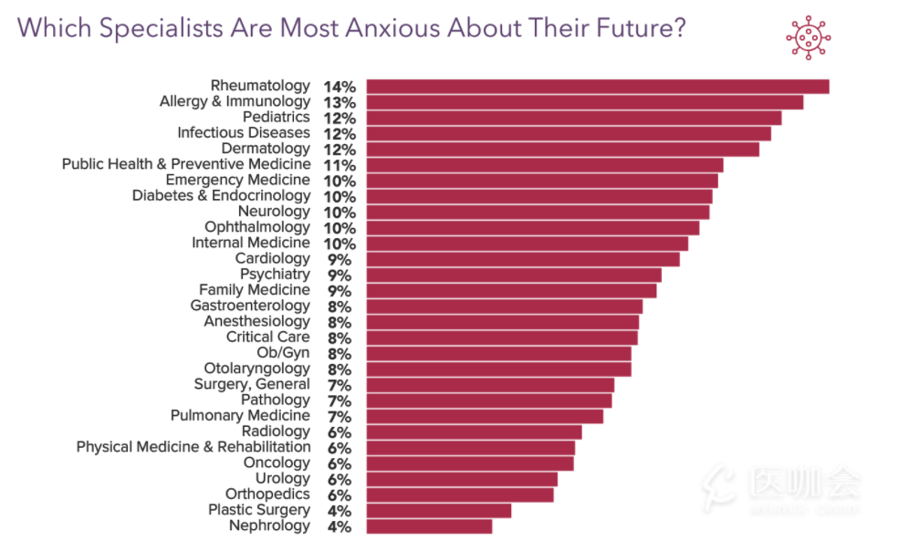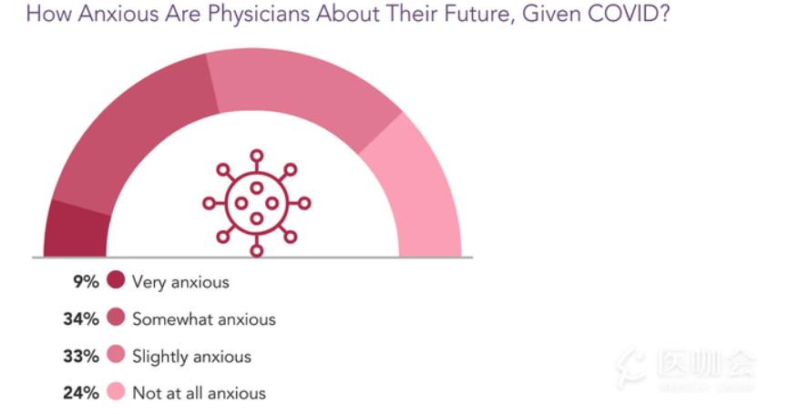 24%的医生表示对于未来没有焦虑感。这与另外一项关于大众的调研类似,23%的人表示对未来不担忧。