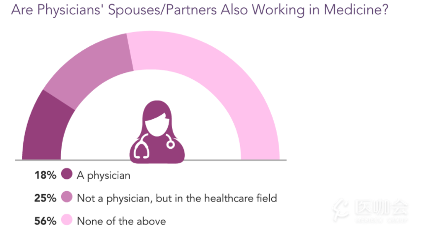 在已经结婚或同居的医生中,43%医生的伴侣在医疗领域工作。