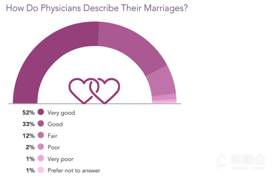 8成以上的医生表示婚姻美满或很美满,和去年的数据类似。