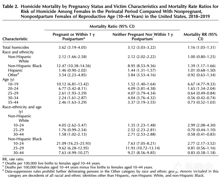 2018-2019年,孕期和妊娠结束后42天内的凶杀案死亡率超过孕产妇其他主要死因,如高血压疾病、出血和感染。在非西班牙裔黑人女性和25岁以下的女性中,孕产期的凶杀案发生率最高。