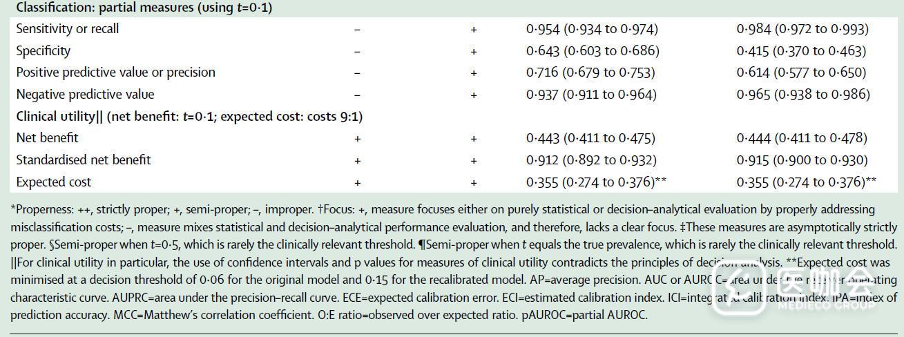 表1. 本文所讨论的性能指标以及案例研究中ADNEX模型在校准前后的结果