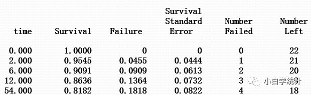 也就是说,第二组人,在第2个月,死亡1例,总共22人剩了21人。