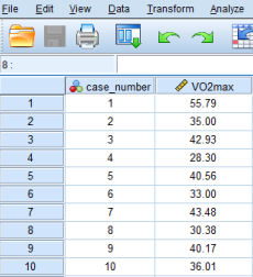 某研究者想了解某数据集中最大携氧能力(VO2max)是否服从正态分布,部分数据如图1。研究者应如何绘图查看呢?