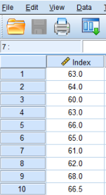某研究者想了解数据中幸福指数的分布特征。幸福指数(Index)采用问卷测量,得分在0-100之间分布,分数越高,幸福指数越强。部分数据如图1。对于该数据,如何绘图展示幸福指数的分布特征呢?